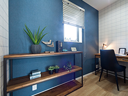 吹き抜けが開放的な玄関は、土間収納と玄関収納でいつもすっきり。陽光あふれる南向きリビングは、ウッドデッキへと続く開放的な空間。毎日のお洗濯が快適になる広いランドリールームも備えました。2階には吹き抜けから光が注ぐ明るいホール、書斎や大容量WIC(ウォークインクローゼット)、南面にはワイドバルコニー。家族みんなの心地よい暮らしを叶える住まいです。