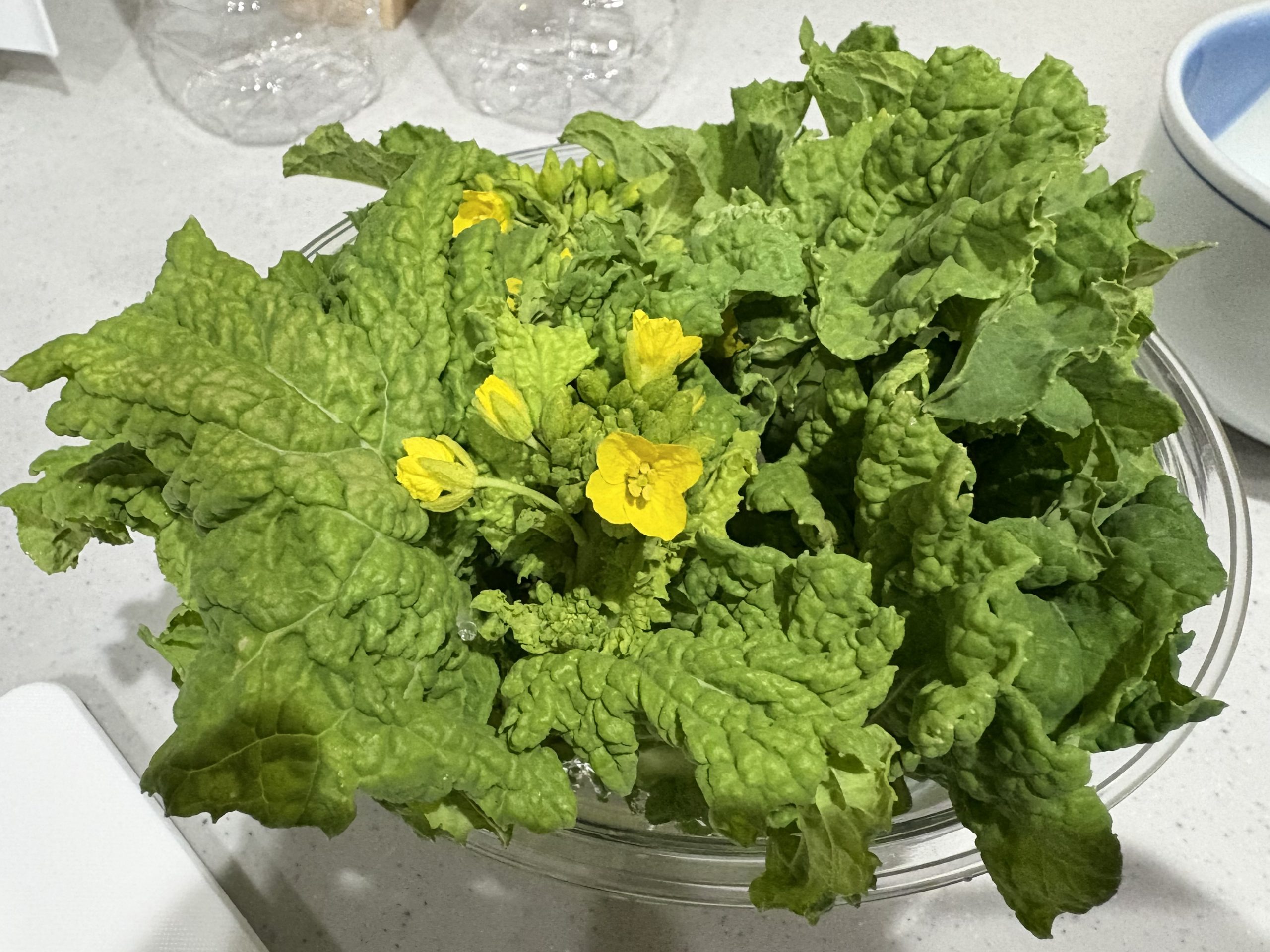 さらには先日、近隣のおばあちゃんから畑で採れた菜の花をいただきました。