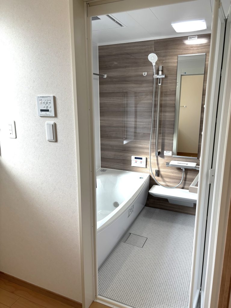 浴室|ユニットバス、浴室暖房乾燥機を取り替えています。木目調のアクセントパネルがくつろぎ空間を演出します。